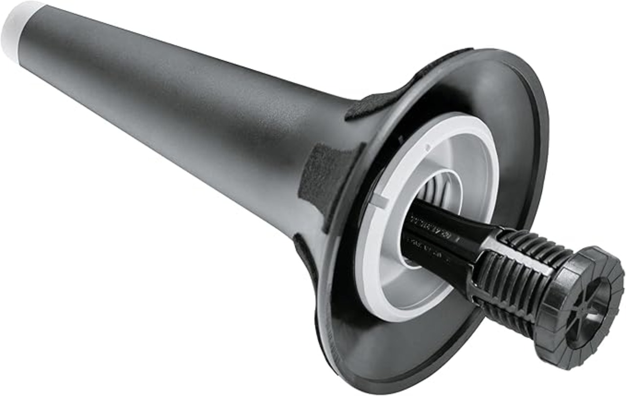 フリューゲルホルン用スタンド。持ち運びに便利なベル内収納型です。ベル収納時にはスタンドがベル面とほぼ水平になるため、楽器を無理なくケースに収納可能です。