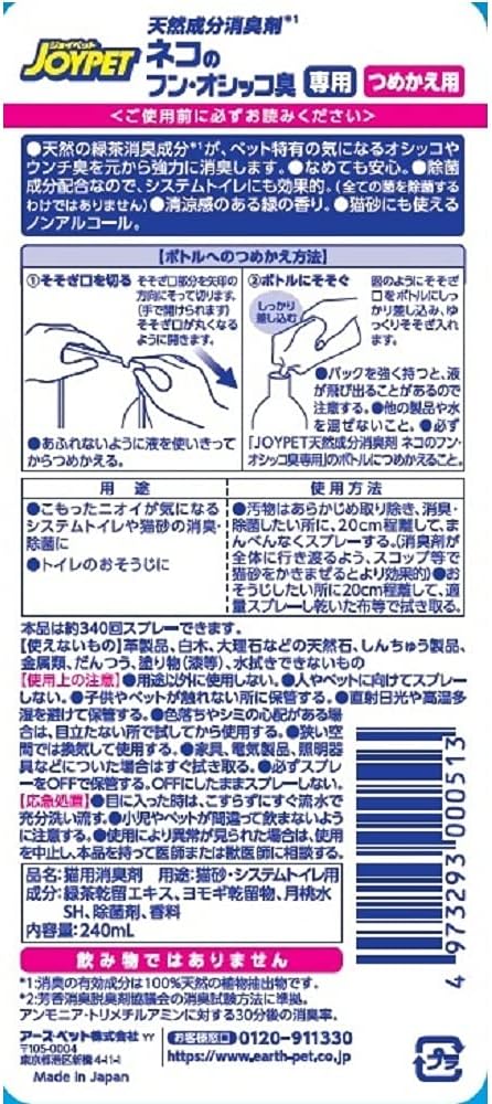 JOYPET(ジョイペット) JOYPET 天然成分消臭剤 ネコのフン・オシッコ臭専用 つめかえ用 240ml