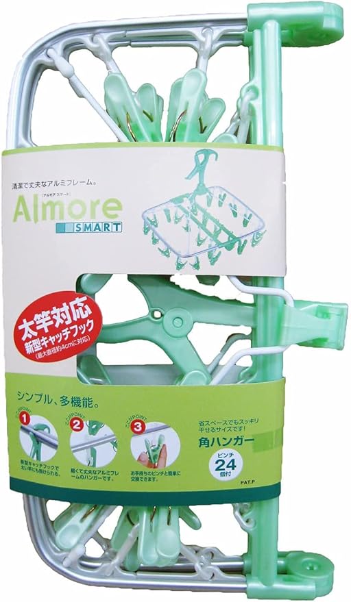 オーエ 洗濯 物干し ハンガー アルモアスマート 角 グリーン 24ピンチ 軽くて丈夫なアルミフレーム 約35 35 35cm