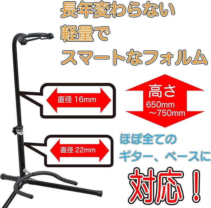 安定の品質:安定感のある三脚と、ラバー仕様のネックとボディの受け部により、大切なギターをしっかりと支えます。