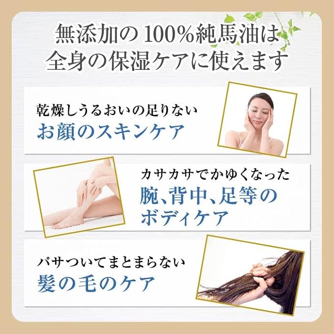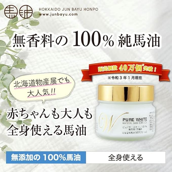 純馬油を薬品等一切使用せずに精製した、全身に使用できる無香料の保湿クリームです。