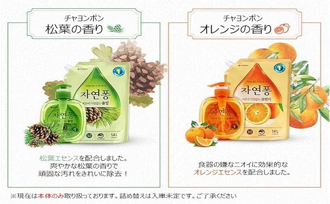 韓国製 食器用洗剤 チャヨンポン(JayonPong) 手肌にやさしい、環境にもやさしい 食器用洗剤490mL (オレンジの香り)