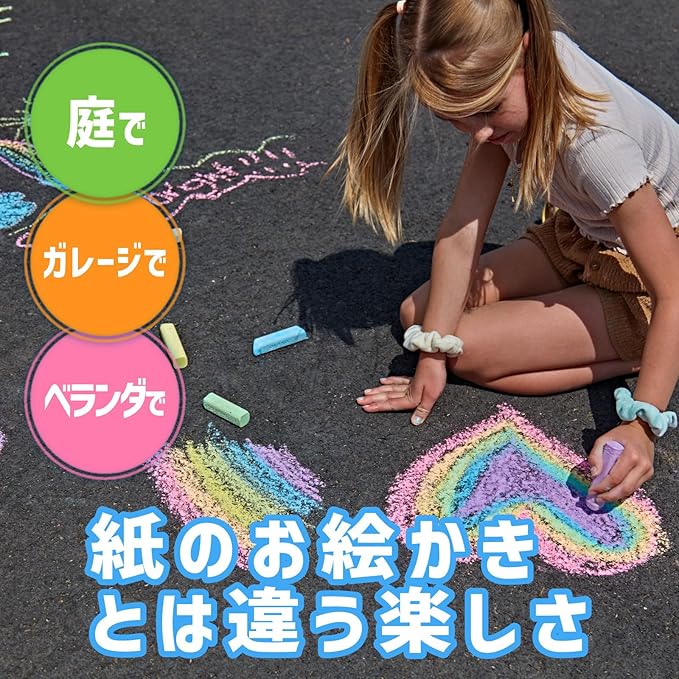 アスファルトやガレージにダイナミックにお絵かきをしたいお子さまにもおすすめ。普段とは違うお絵かきを楽しめます。のびのび自由にお絵かきをさせてあげられるので、子どもたちの感性をやさしく刺激し、個性あふれる表現力と想像力を育みます。
