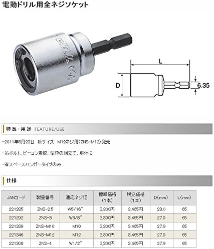 TOP トップ工業 ZNS-M10 電動ドリル用全ネジソケット (インパクト対応)