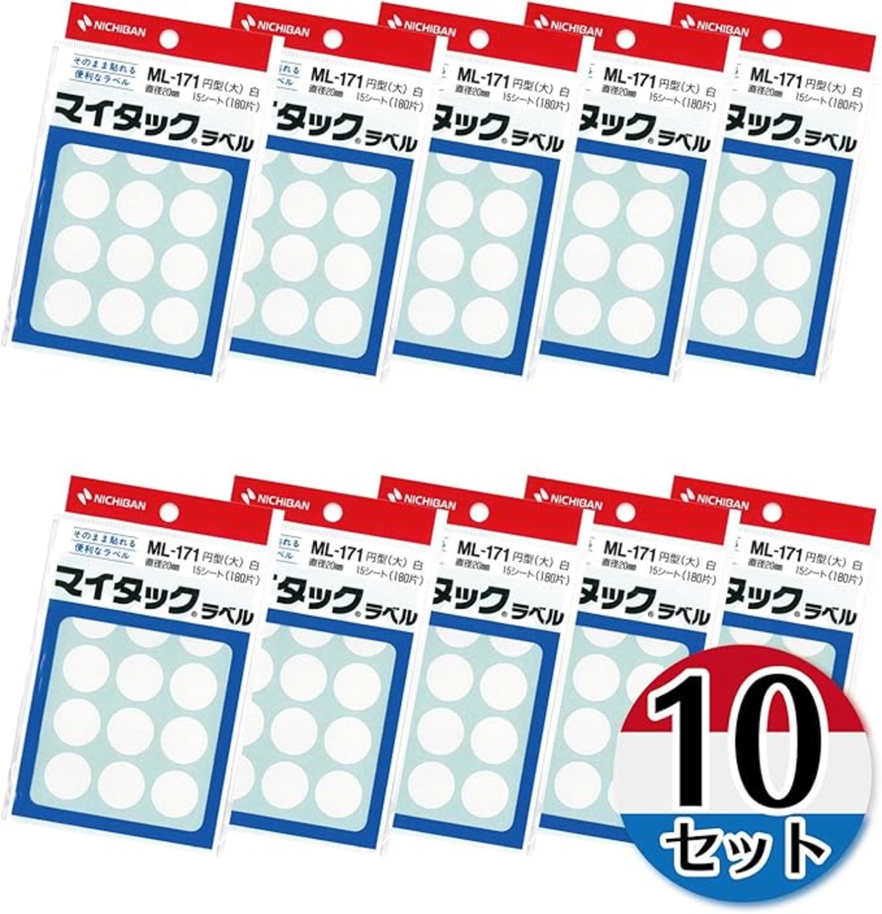 ニチバン マイタック カラーラベル 10個入 直径20mm ML1715-10P 白