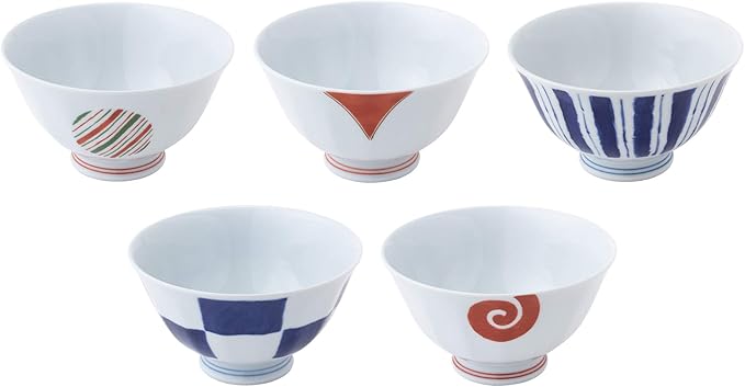 西海陶器 波佐見焼 茶碗 ご飯茶碗 染錦モダン 直径11.5 cm 5柄 食器セット はさみやき 食器 お茶碗 小さめ 軽め ちゃわん プレゼント 結婚祝い 母の日 和食器 食洗機対応 電子レンジ対応 日本製 13351