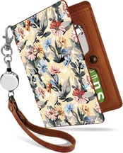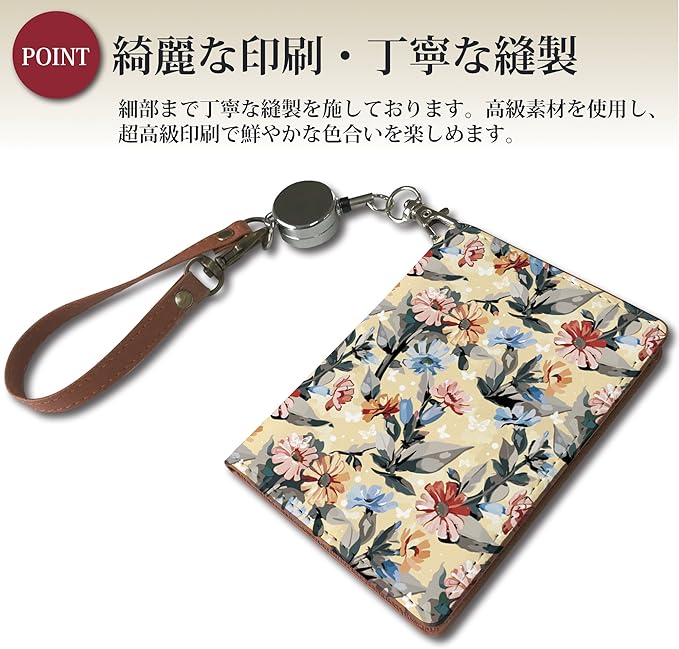 [Pretimo] パスケース 定期入れ リール付き かわいい ボタニカル柄 ベージュ フラワー 二つ折り 中がみえない おしゃれ レディース 花 花柄 黒 [ボタニカル柄 ベージュ/ps]
