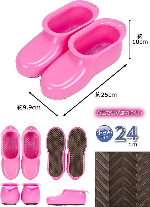 ストリックスデザイン バスブーツ ショート 浅型 日本製 24cm ピンク バス&ランドリーブーツ ミニ やさしい履き心地 スポンジ底 SB-013