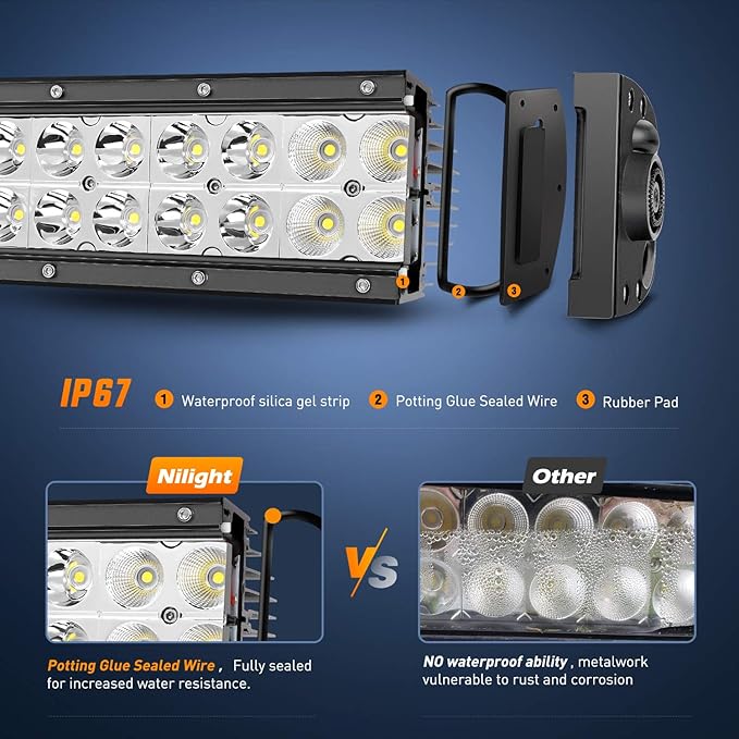 頑丈で耐久性: 高度なPCレンズ、頑丈なアルミニウムハウジング、頑丈なブラケットにより、ライトバーは過酷な条件にも耐えられます。