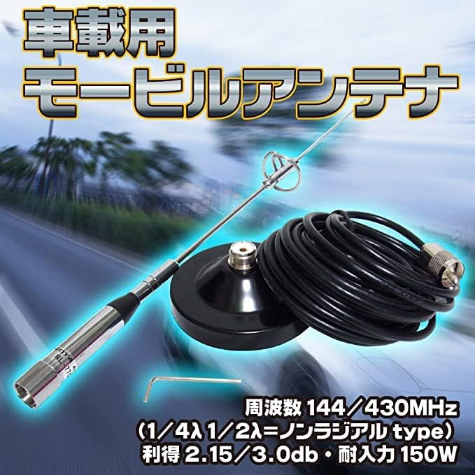 M型接栓 144/430MHz モービルアンテナ マグネット基台 同軸ケーブル 3点セット