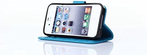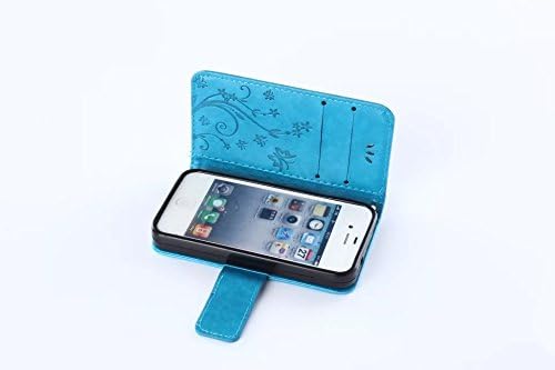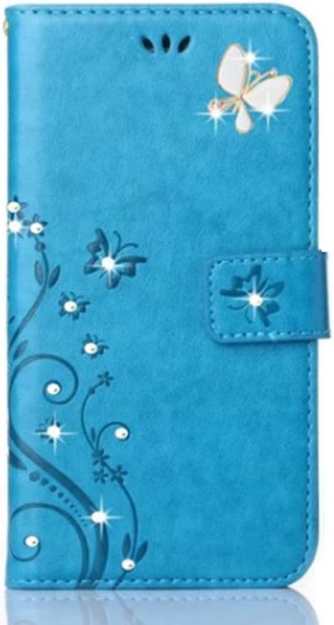 iPhone5/iPhone5S/iPhoneSE対応ケース おしゃれ 純色 バタフライの印 PUレザー 上絵 手帳型 カード入れ 財布カバー スタンド機能 耐衝撃 防塵 耐久性 装着やすい 吸着の機能 キラキラ 胡蝶 ラインストーン デコ メチャ可愛い アイフォンアイフォン5s ケース アイフォンse ケース (ブルー)