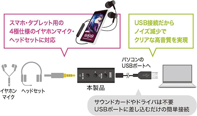 サンワサプライ USBオーディオ変換アダプタ(4極ヘッドセット用) MM-ADUSB4