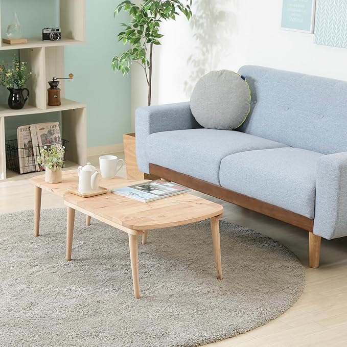 不二貿易 ローテーブル リビングテーブル 幅70~120 奥行50 高さ34cm ナチュラル 天然木 スライド式 SLIDE Natural Signature 37019