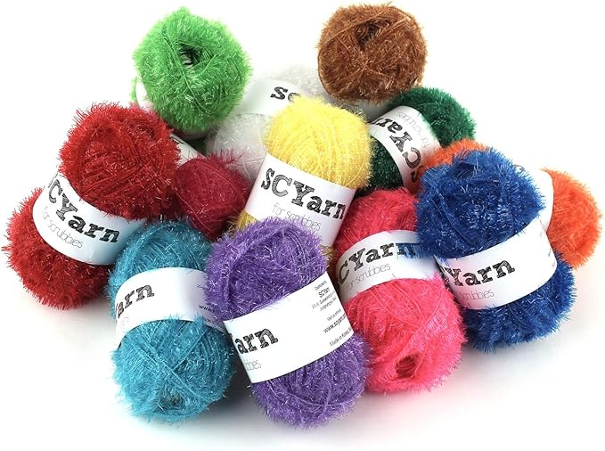 SCYarn 韓国産たわし糸12色セット 1玉当たり 35g 約75m 計420g、900m ポリエステル毛糸(レインボー)