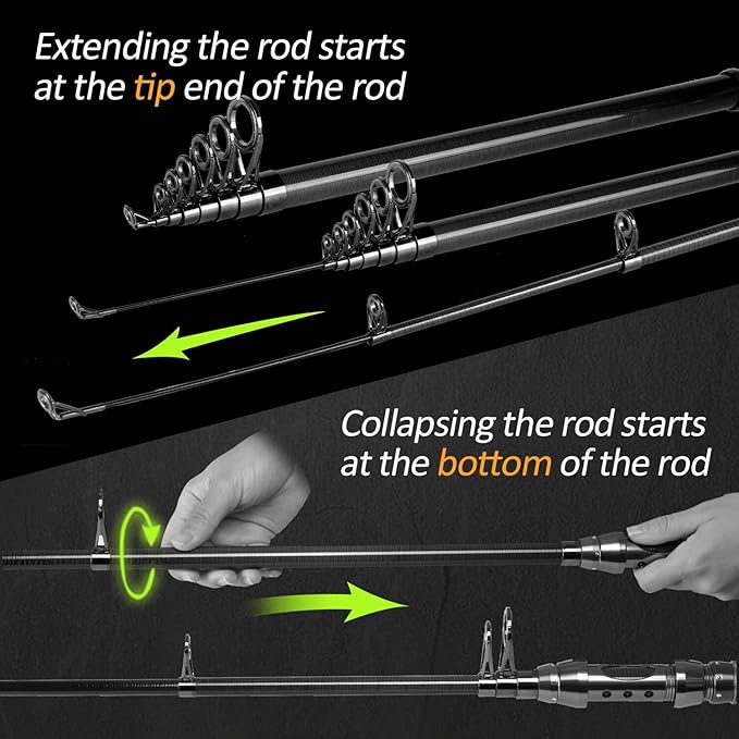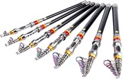 【伸縮可能】伸縮式の携帯型釣り竿で、どこでも持ち歩きやすい。釣り竿専用収納袋付き。