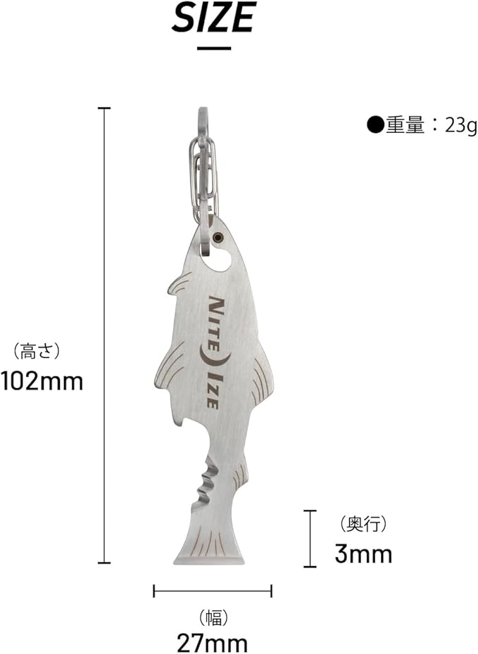 ナイトアイズ(NITEIZE) ドゥーヒッキー フィッシュキーツール マルチツール 多機能ツール S字型カラビナ付き 小型 キーホルダー 栓抜き ドライバー シルバー