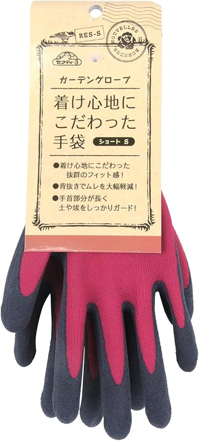 セフティー3(Safety-3) ガーデングローブ 着け心地にこだわった手袋 レッド ショート S RES-S