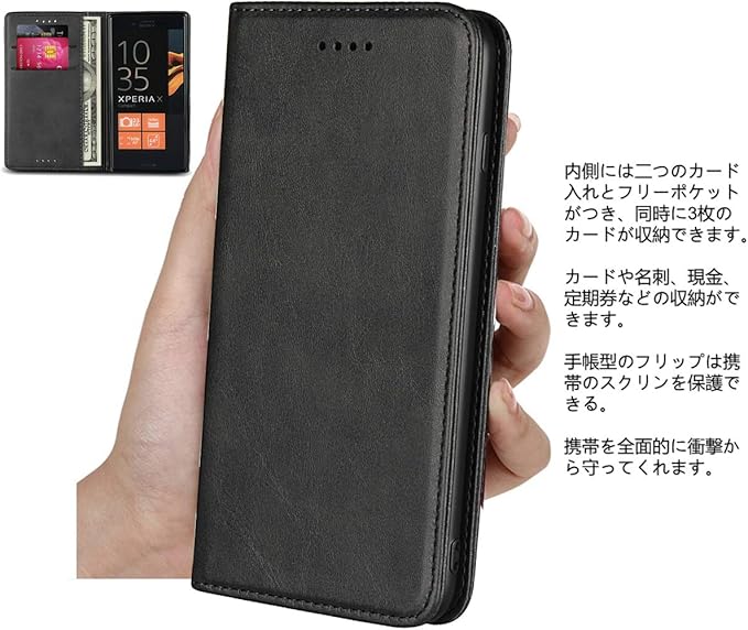 Jaortyソニー Sony xperia so 02j ケース 手帳型 携帯カバー so 02j スマホケース エクスペリア xperia x compact so 02j 手帳型ケース人気 内蔵マグネットPU合成皮革 財布型 カード収納 スタンド機能-ブラック