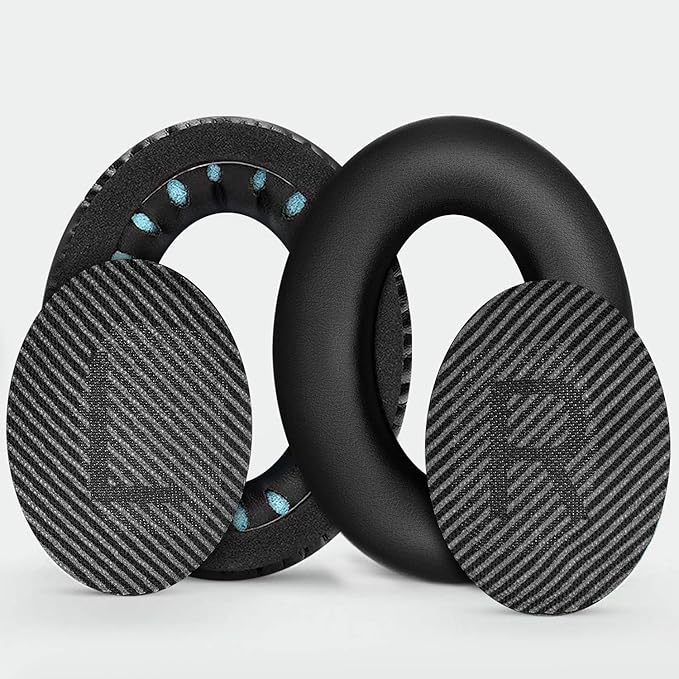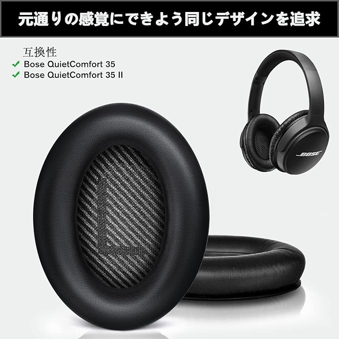 イヤーパッド イヤークッション 交換用Bose QuietComfort 35 & 35ii 交換パッド ヘッドホンパッド 遮音 ソフトレザー 柔軟性良い シープスキン メモリーフォーム (ブラック)
