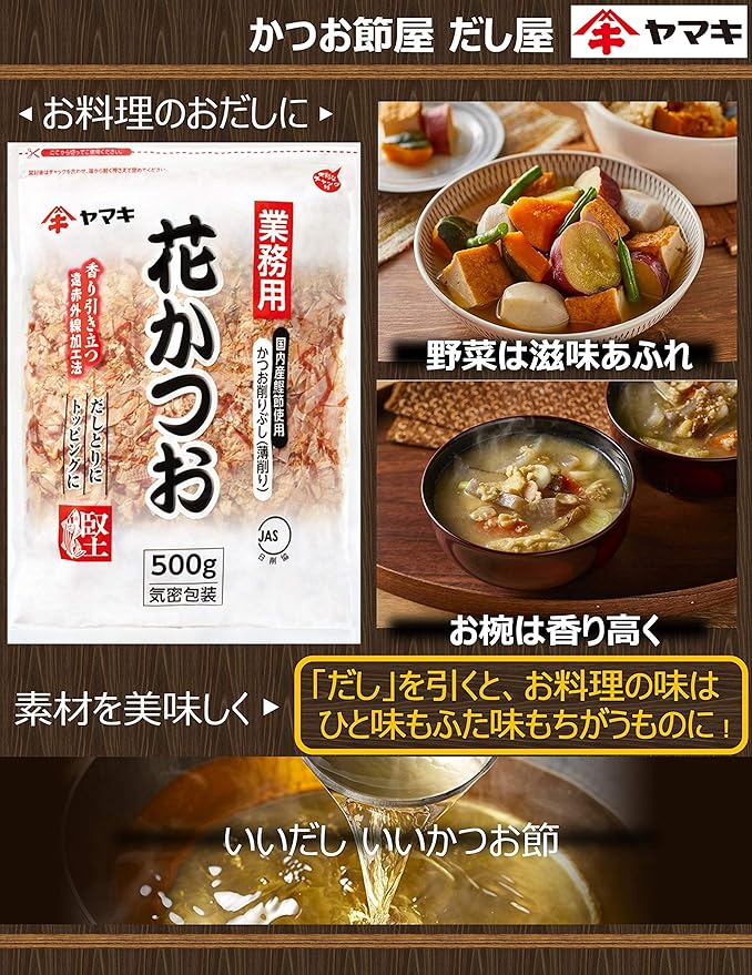 ・新品。新鮮。未使用。未開封。 ・香も引き立つ 遠赤外線加工法。だしとりに! トッピングに! ・原材料名:かつおのふし(国内産)。ヤマキ 業務用 国内産鰹節使用 かつお削りぶし 薄削り 花かつお 気密包装 500g 2袋 ・常温の宅急便でお届けいたします。
