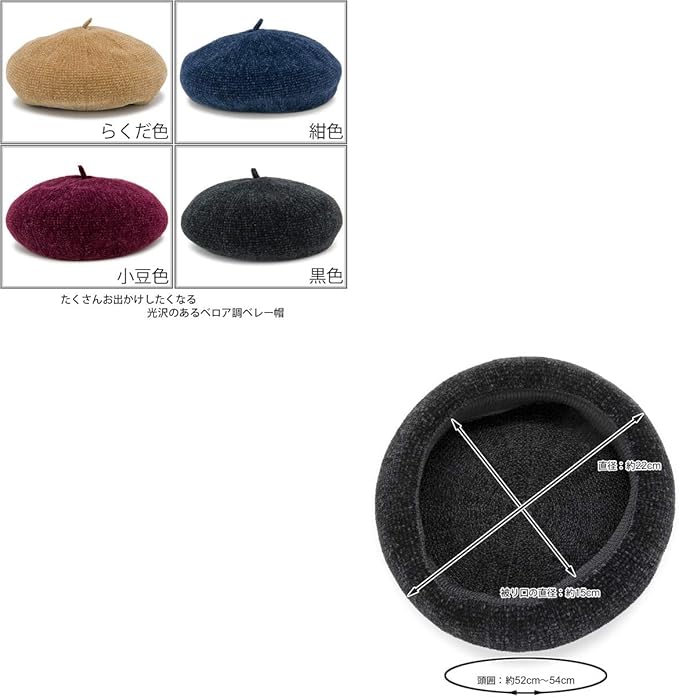 サイズ表記52~54cm(頭囲:約52~54cm、被り口の直径:約15cm、直径:約22cm)