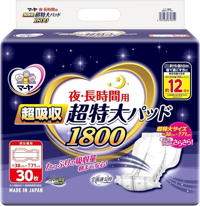 マーヤ 夜長時間用 超吸収タイプ (超特大パッド1800)