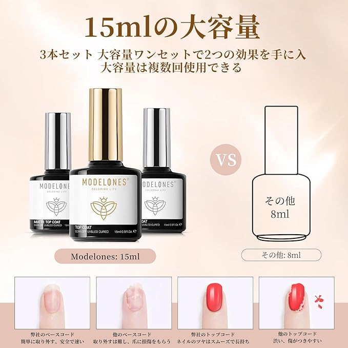Modelones ジェルネイル トップコート マットトップコート ベースコート 3本セット10ml 拭き取り不要 UV/LED対応