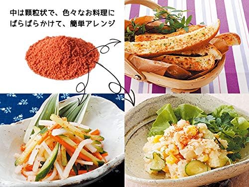 「たくさんのお客様に明太子をもっと手軽に、多くのお料理に合わせて召し上がって頂きたい!」という思いからこの商品が誕生しました。ぱっと一振りするだけで明太子料理に変身するありそうでなかった便利な明太子の顆粒調味料です。