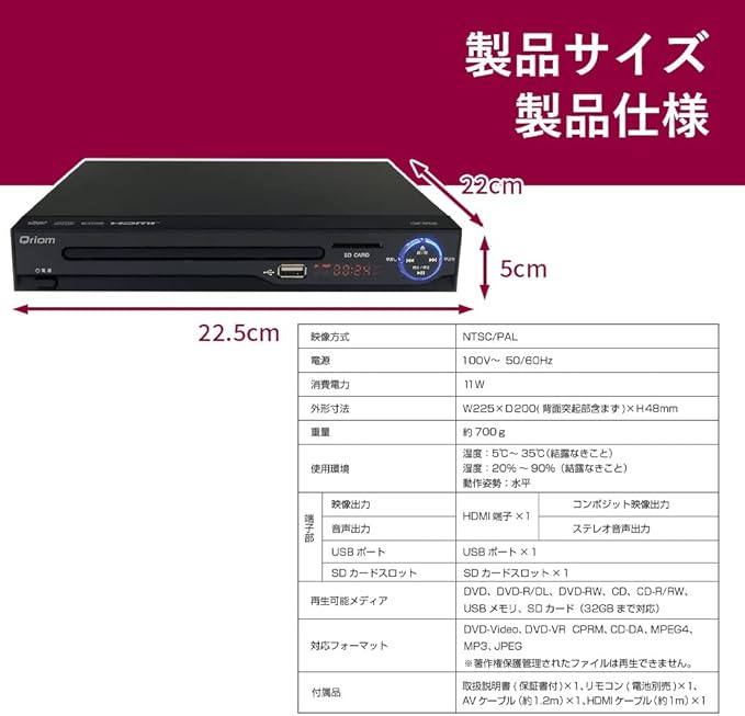 [山善] キュリオム DVDプレーヤー CPRM対応 再生専用 HDMIケーブル付き CDVP-42HD(B)