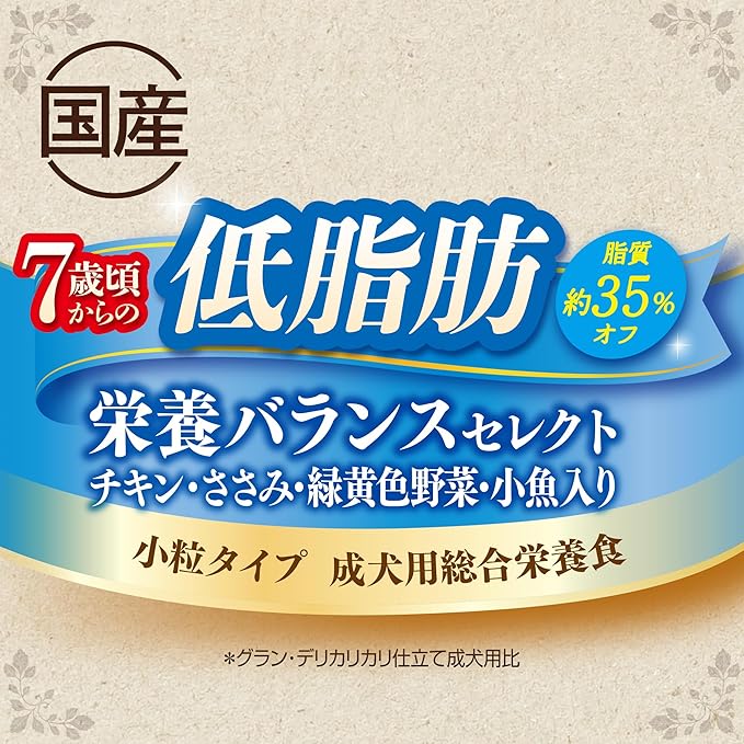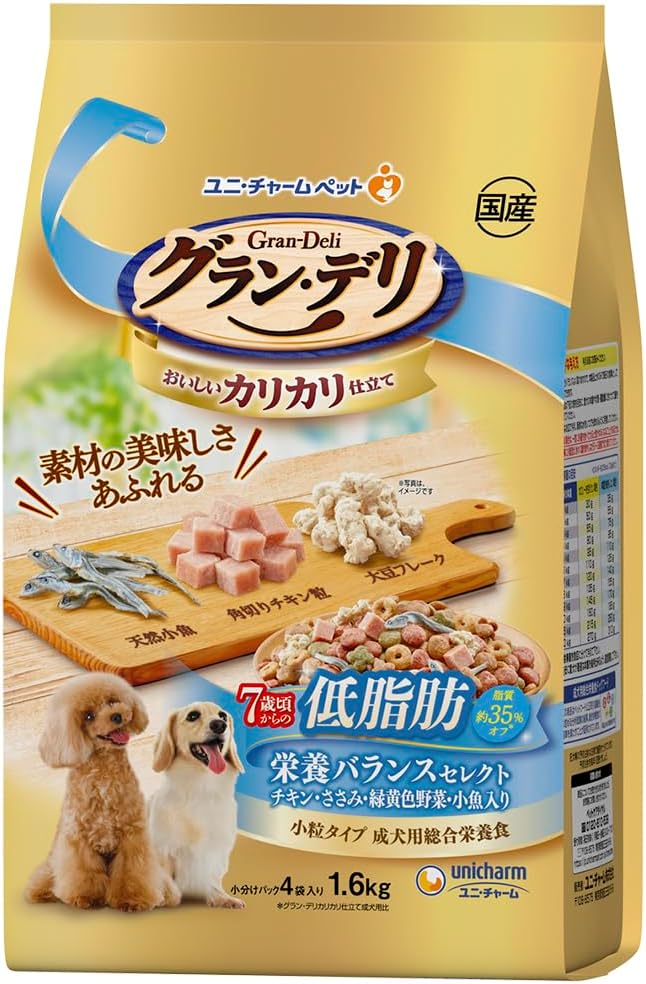 ユニ・チャーム グランデリ ドックフード ドライ カリカリ仕立て シニア 7歳頃からの低脂肪栄養バランスセレクト 脂肪分約35%カット 1.6kg 国産 ユニチャーム