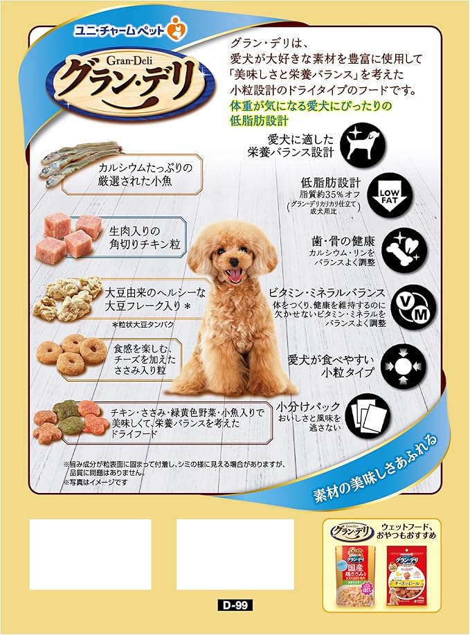 商品用途・使用方法 犬 イヌ いぬ ドックフード ドライ 犬用 犬の餌 犬えさ 犬餌 グランデリ カリカリ仕立て ペットフード どっぐふーど ユニチャーム ペット