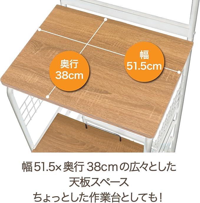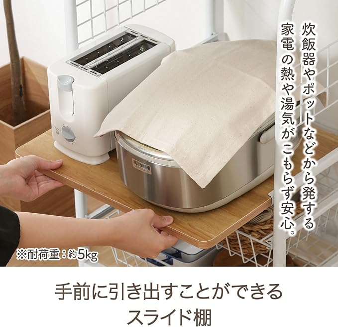不二貿易 レンジ台 キッチンラック 幅51.5 奥行41 高さ140.5cm ホワイト ナチュラル スライド棚 収納 レンジワゴン キャスター付き 14691