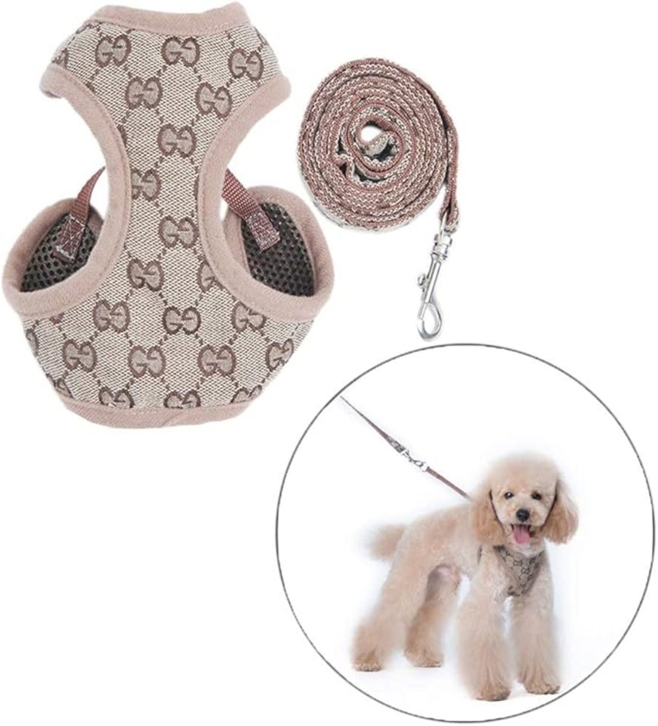 犬ハーネスメッシュ小中型犬ナイロンペ ット胴輪 通気可調節猫用首輪かわいい 犬用ハーネスナイロン、子犬用調整可能なソフトメッシュベストハーネスリードセット YANW (Color : Camel, Size : S)