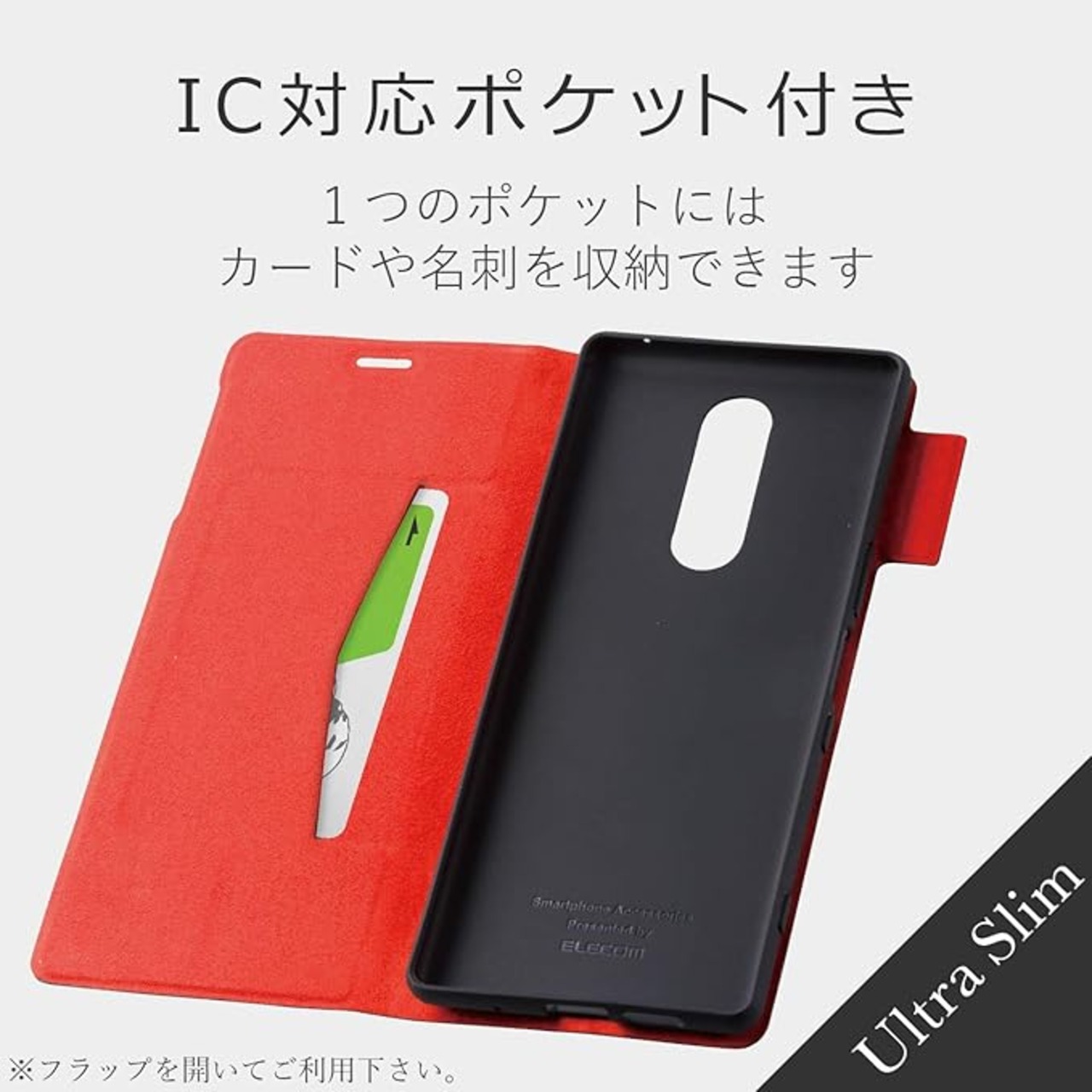 本体の薄さ、軽さを損ねない薄型・超軽量なウルトラスリムタイプのXperia 1用ソフトレザーケース(手帳型)です。