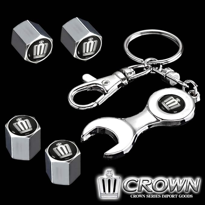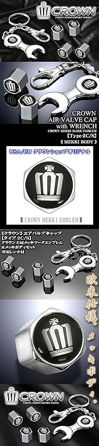 クラウン マジェスタ車用 メッキ 王冠 マーク エンブレム付 エアバルブ キャップ メッキボディ タイプ2C S 専用 レンチ付 4個セット