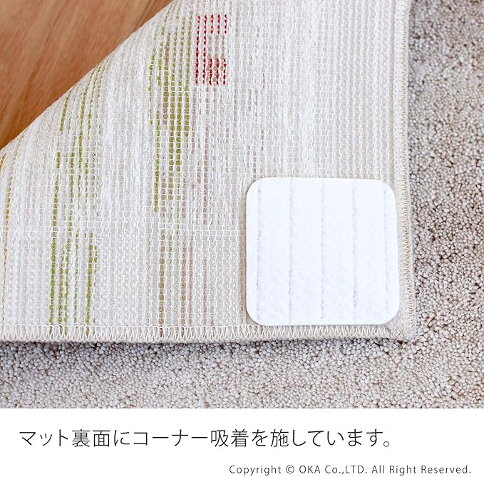オカ(OKA) 玄関マット ベージュ 約30cm 110cm 洗える コーナー吸着 ギャベ 吸着 すべりどめ