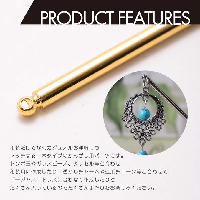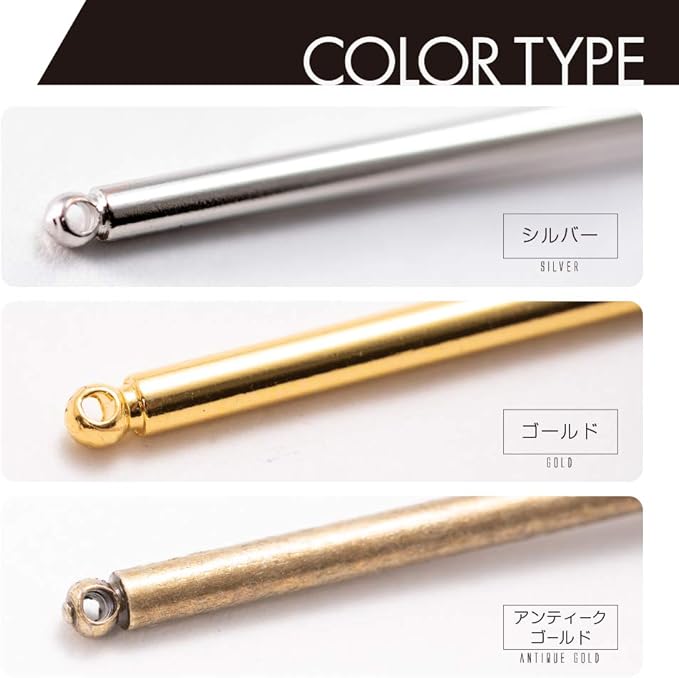 通し穴付きかんざし金具の30本セットです。和装だけでなくカジュアルお洋服にもマッチする一本タイプのかんざし用パーツ!