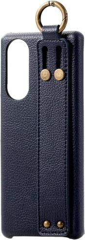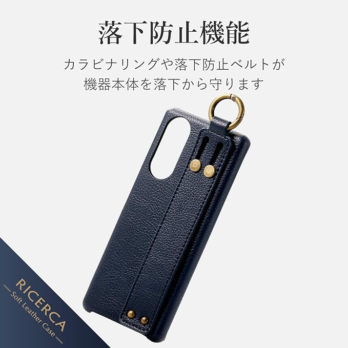 エレコム Xperia 5 ケース RICERCA ソフトレザー [イタリアブランドの滑らかで上質なソフトレザーを採用] 落下防止バンド カラビナリング付 ネイビー PM-X5PLOILNV