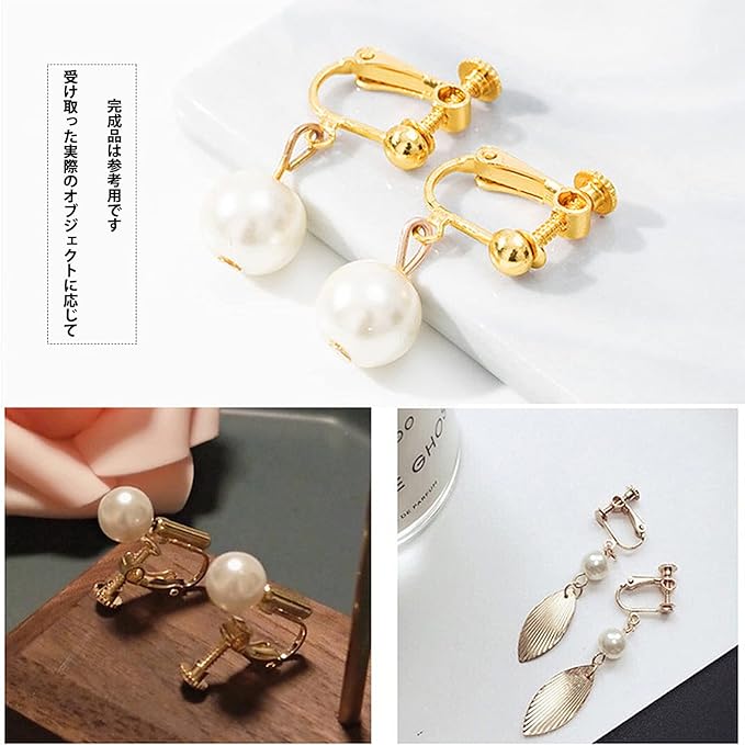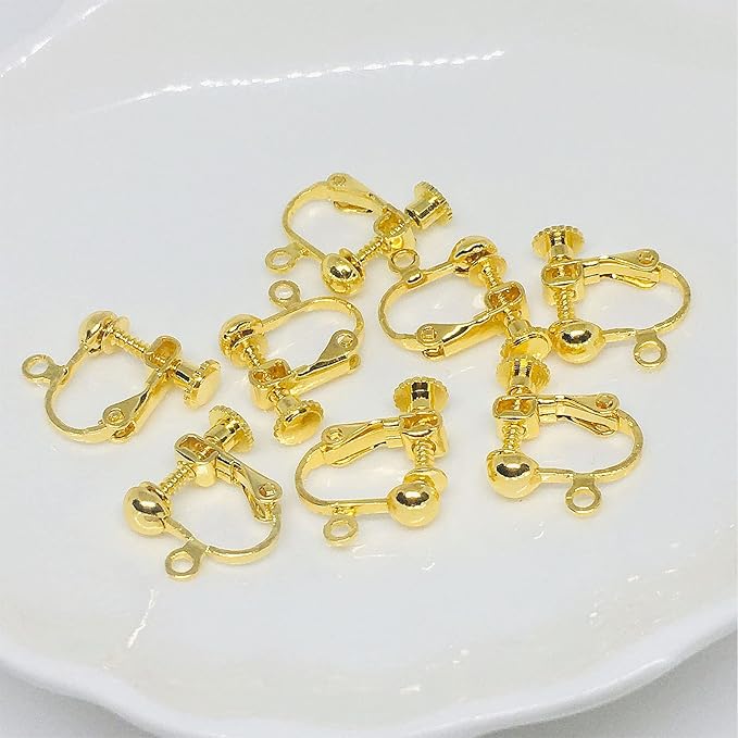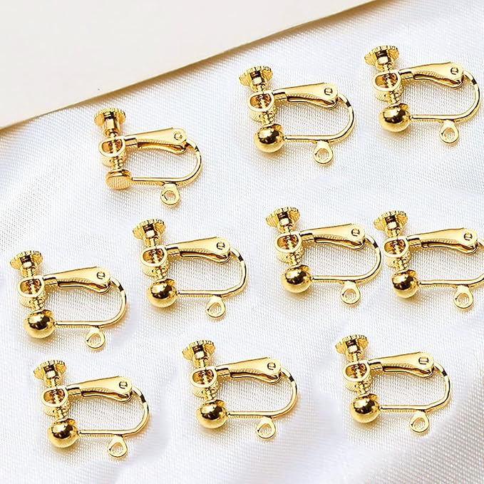 【BEAUTY PLAYER】ピアス イヤリング 変換 イヤリングコンバーター 10個入り 手芸 手作り用 パーツ 耳穴なし アクセサリーパーツ ネジバネ式 (丸玉付き ゴールド)