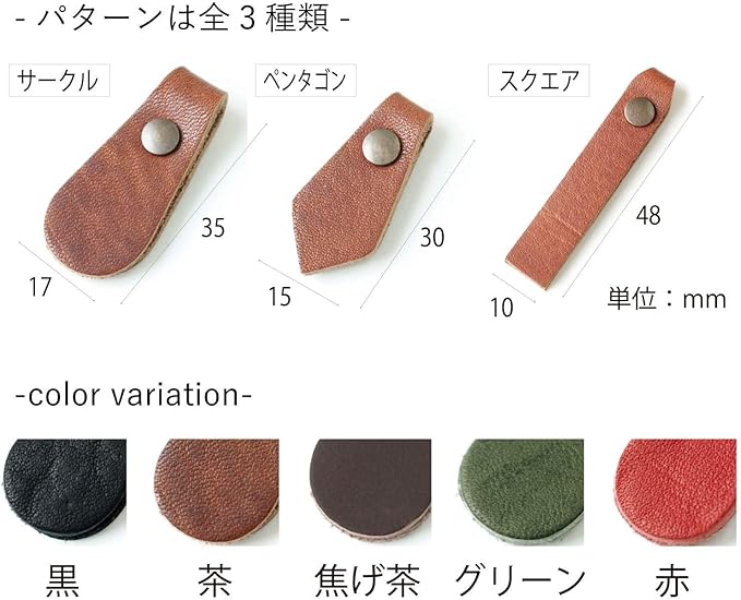 カラーは全部で5色(黒・緑・赤・茶・焦げ茶)