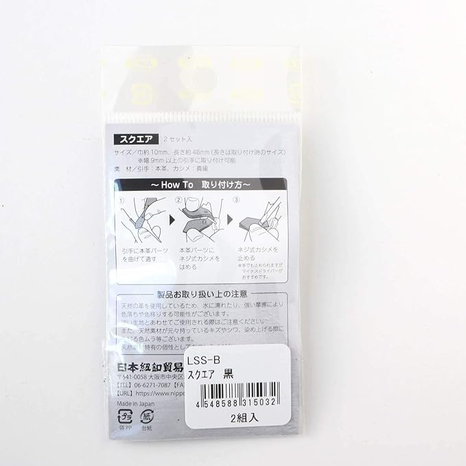 日本紐釦貿易(Nippon Chuko)NBK 本革 ファスナー引き手パーツ スクエア型 ネジ式カシメ付き 約10mm 48mm 黒 LSS-B