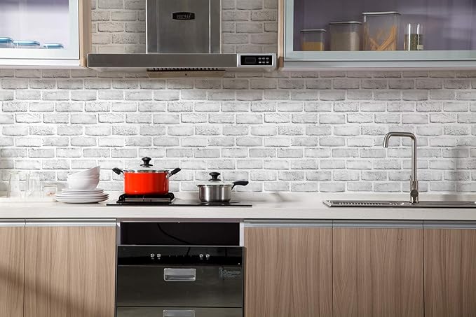 ホワイトグレーのレンガの壁紙 - ❤ 簡単に貼って剥がせる❤--簡単にカット、取り付け、剥がして貼ることができます。取り外した後も接着剤の残留物はありません。 (表面が平らで乾き、清潔であることを確認してください)
