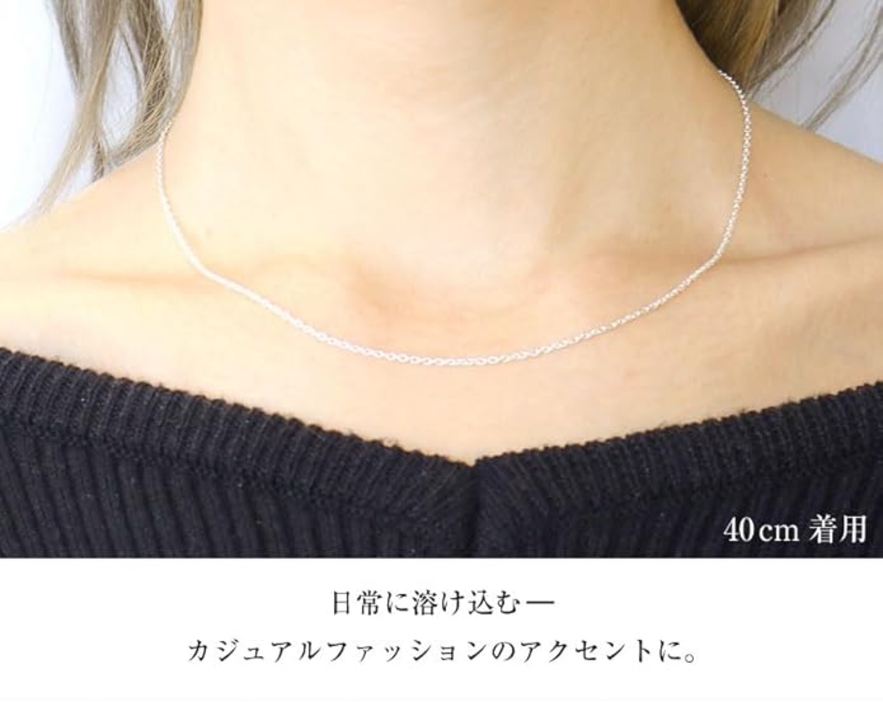 あずきチェーンはエレガントなコーディネートにもピッタリでどんなスタイルにも合わせやすいチェーンです。