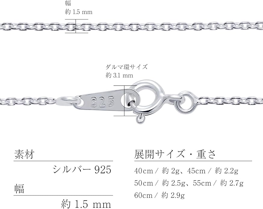 [シアーズ] シルバー925 SILVER 925 あずきチェーン 幅 1.5mm scl40-60
