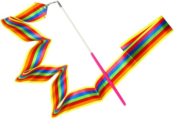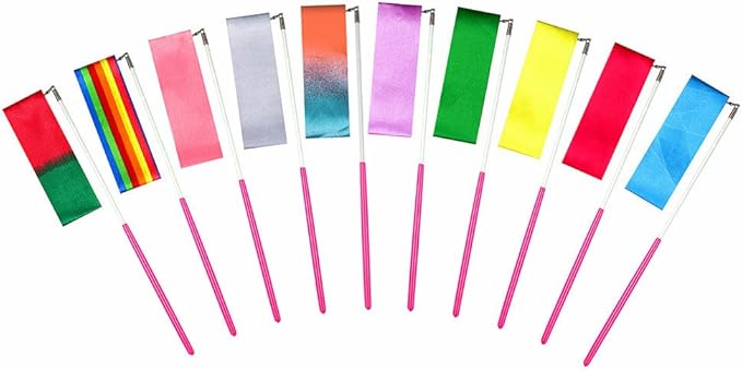 MUDOR 10個の2メートル長の新体操 リボン、子供のためのくるくる杖および虹のダンスのリボン