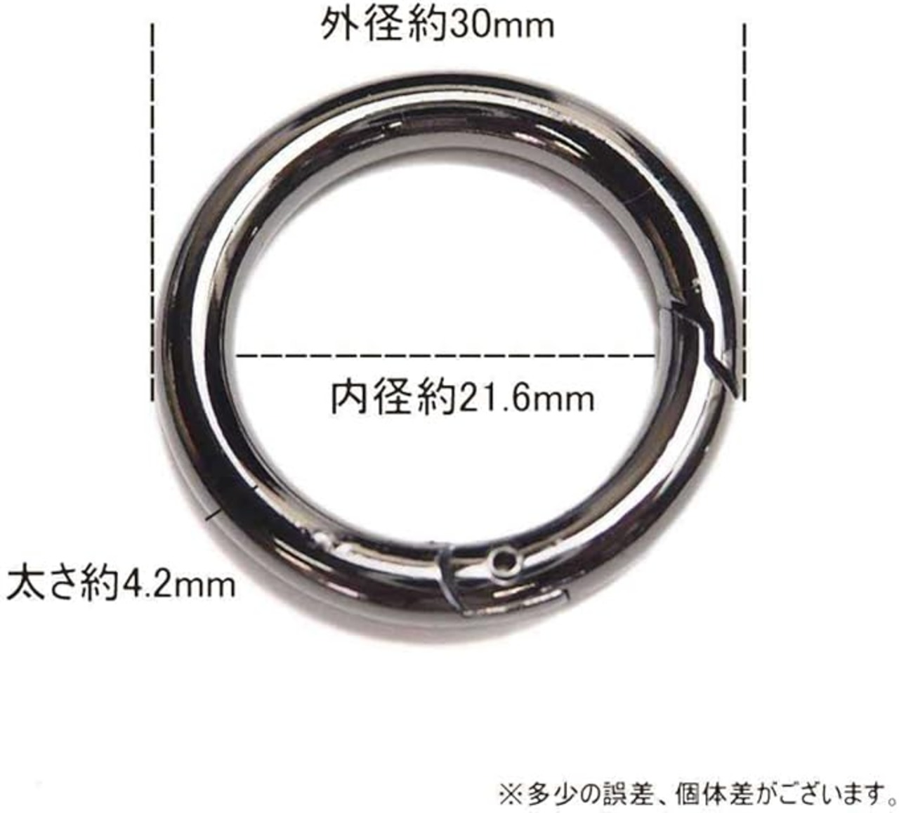 丸型カラビナ/サークルカラビナ/ラウンドカラビナ 4個セット 外径30mm 丸フック/リングフック キーホルダー/アクセサリーパーツ (ブラック)