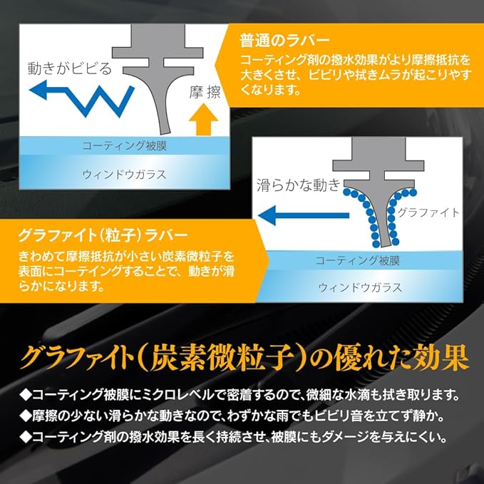 クリアな視界で運転をサポート!スタイリッシュな見た目と、優れた機能性。走行時にワイパーに受ける風を利用しワイパーの浮き上がりを抑え、均等な力で拭きムラをなくしクリアな視界を実現