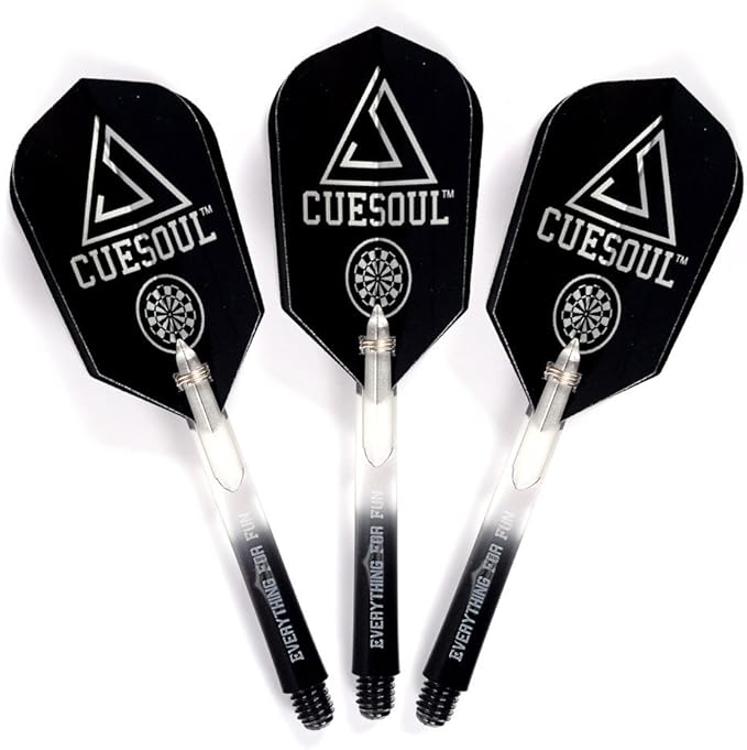 素材:ブラス(真鍮)バレル3本(16g/本)、耐久性のPC製いシャフト6本、フライト6枚、2ABソフトチップ3本、CUESOULデザインスリムケース1個、ダーツ単体重量:18g
