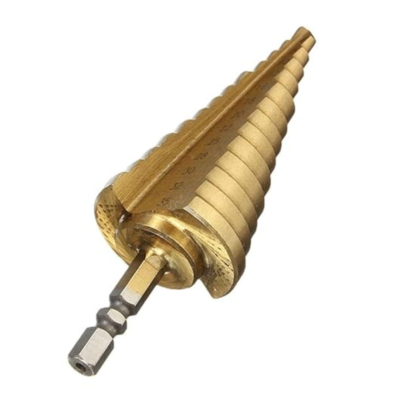 ステップドリル 六角軸 スパイラル HSS鋼 HSSチタン被覆ステップコーンドリルビット6-35MM 13ステップ六角シャンク チタンコーティング ステップドリル ステンレス用