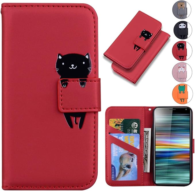 Xperia 8 [ SOV42 SO-02M ] ケース手帳型かわいい動物 猫 sony エクスペリア 8 スマホケース携帯ケースカバー可愛い 財布型 女性 人気 手作り 高級PUレザー革 スタンド機能 カード収納 耐衝撃(赤/猫)